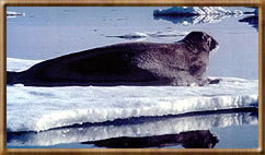 They usually stay very near the edge of the ice like this one so they can just slip into the water as the bear is getting out. Seals can swim much faster and easily outswim bears. This bear was so big that he figured out another way of getting seals. He would swim under the ice where it was thin enough to let light through until he saw the silloutte of a seal. The polar bear would swim up fast under the ice and just change direction at the last second. He would jump out on the ice and bite the seals head and as the big bear would spill out on to the ice it would twist the seals neck breaking it. However, my head was not the same shape as a seals so he could not get my head in his mouth. That is probably why it knocked me back and almost out cold but I have to admit I was pretty knocked out and don't remember it. Polar bears must have been somewhat different. They were also different in other ways back then. A female would defend her baby and a male would often kill her and then eat her. They would also kill and eat other polar bears whenever they got weak. You just don't hear about them being cannibals these days. They say there are five different kinds of polar bears and maybe there used to be a sixth kind. © 2003 John Pinil